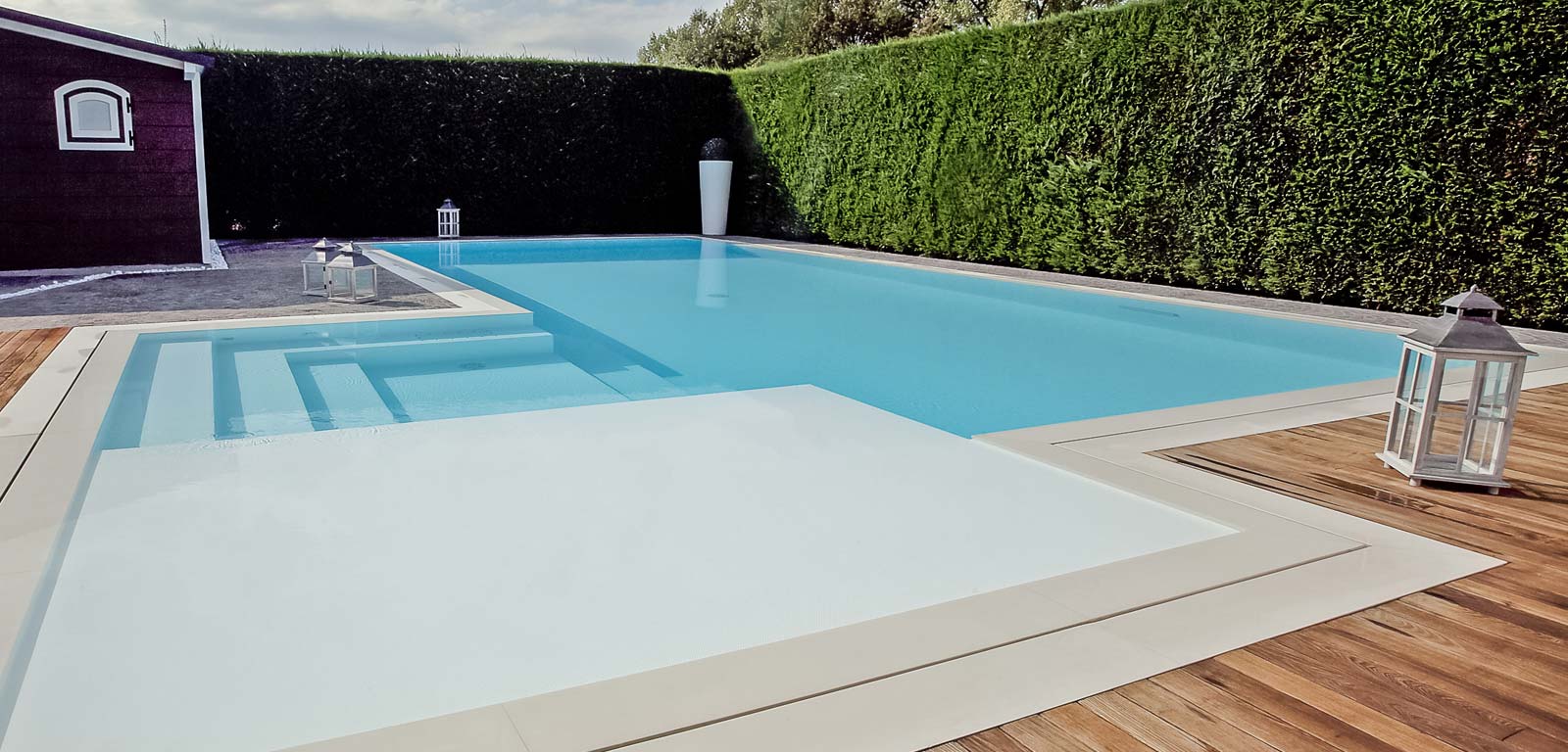 Il bianco è eleganza, finezza, perfezione. Grazie ai suoi toni puri esalta tutti i componenti della piscina dando la giusta importanza a ogni elemento e offrendo multicolori variazioni tonali e riflessi incredibili.